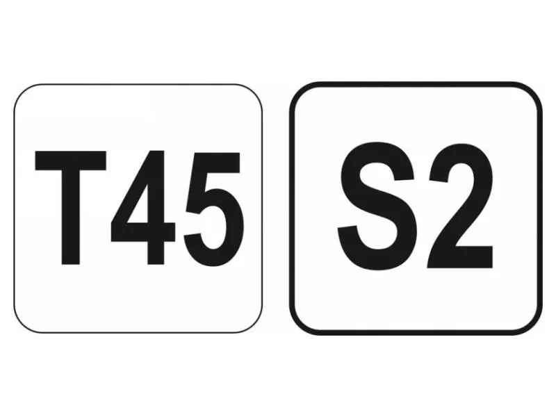 Professional Torx bound key with handle, t45 size size. A handy and solid plastic handle, while the mandrel is made of S2 steel. An irreplaceable tool in a car or mechanical workshop.