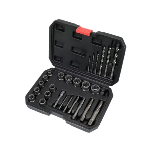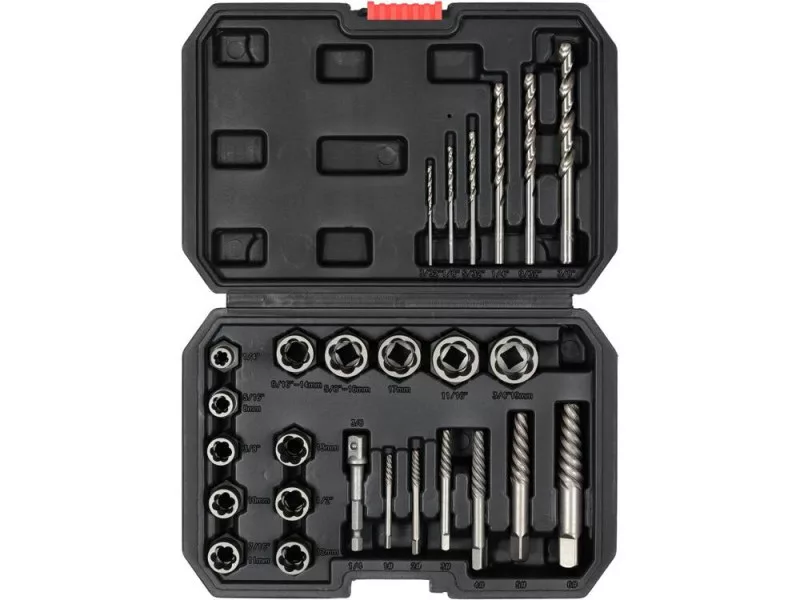 Universal 26-piece set of unscrewing tools designed for unscrewing bolts, pins and nuts.