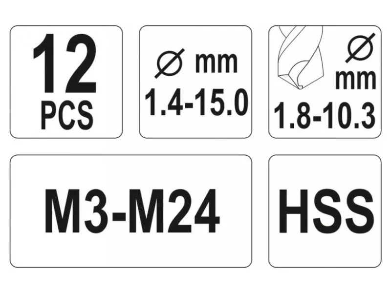 Screwdrivers for broken screws and HSS drills for metal, set 12 pieces by Yato.