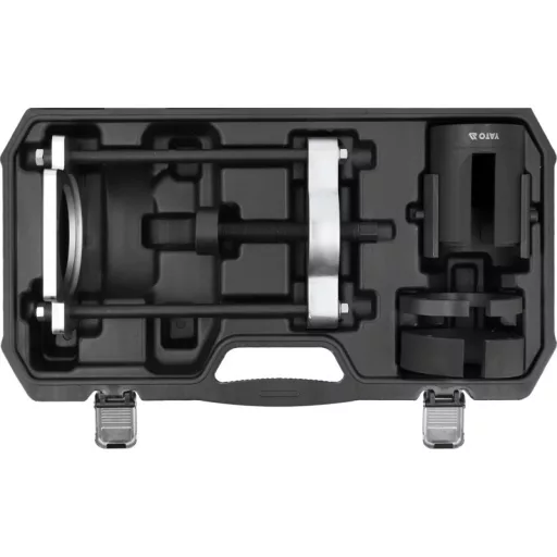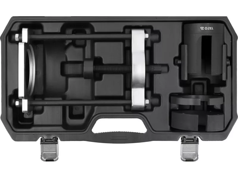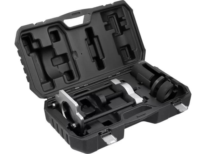 Extractor of suspension bushings in Ford and Volvo cars. It allows for the safe removal and installation of bushings in an efficient way, minimizing the risk of damage.