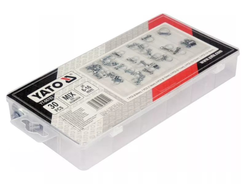 | Set includes | clamps x30 (Ø6-8 mm x7, Ø7-9 mm x7, Ø8-10 mm x5, Ø9-11 mm x5, Ø10-12 mm x3, Ø14-16 mm x3) |