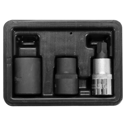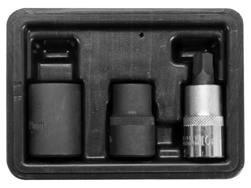 Professional set of 3 sockets designed for servicing Bendix and Girling type brakeós systems. Allows you to remove and replace brake calipersóon cars of different brands: Ford, Smart, Opel, Citroen, Peugeot, Renault.