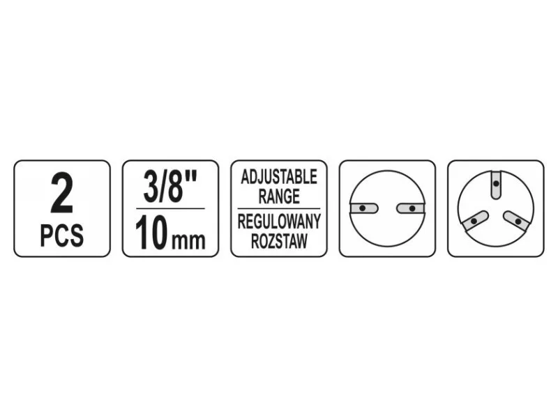 A set of universal 2 and 3-pin adapter & oacute; in pressing piston & oacute; in brake. Universal brake piston adapter 2 pins 20-35 mm. Universal brake piston adapter 3 pins 20-35 mm. It can be used with a standard separator 3/8 & rdquo;.