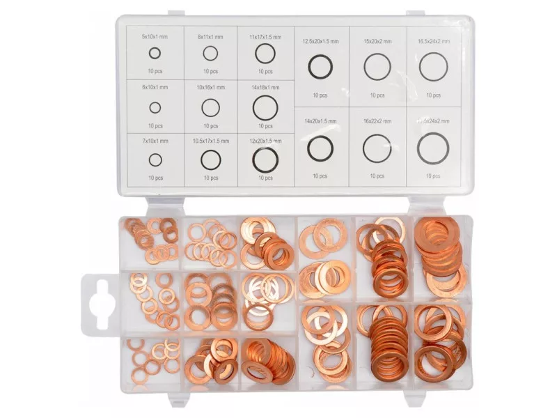 Set includes cont’dØ14x18x1 mm x10, Ø14x20x1.5 mm x10, Ø15x20x2 mm x10, Ø16x22x2 mm x10, Ø16.5x24x2 mm x10, Ø17.5x24x2 mm x10)