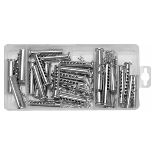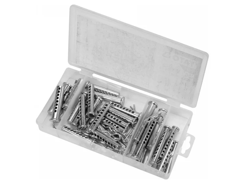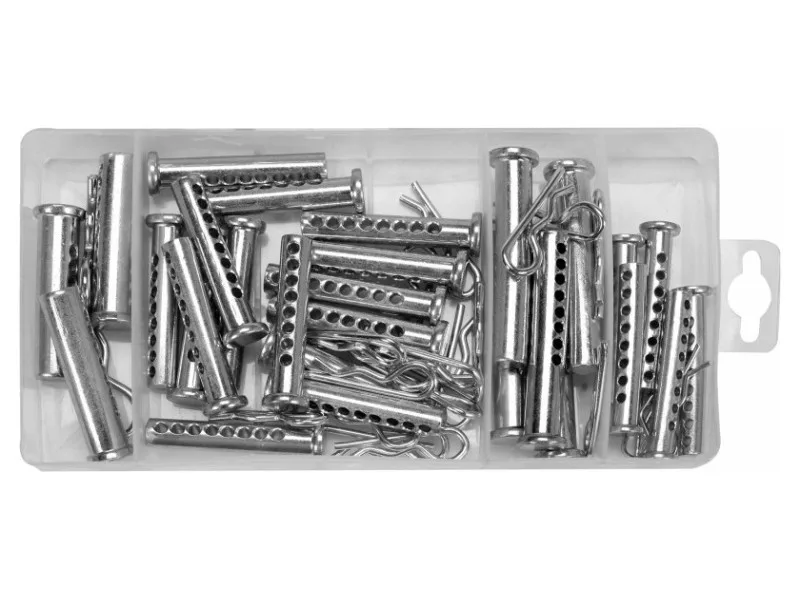 Set includespins x28 (Ø8x50 mm x5, Ø9.5x50 mm x15, Ø11x64 mm x5, Ø13x50 mm x3), pins x28 (2x30 mm x5, 2.5x40 mm x20, 3x44 mm x3)