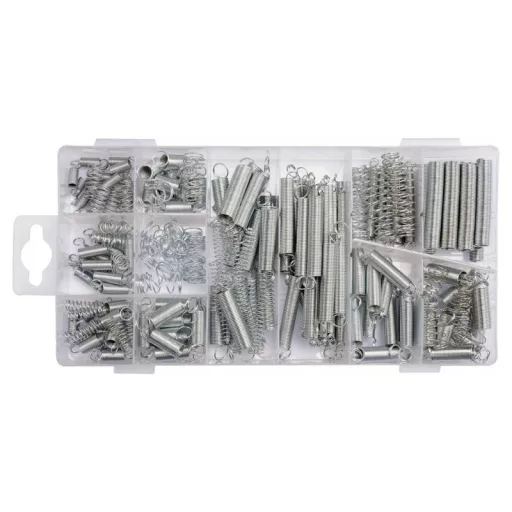 Spring set containing 200 different sizes. Springs working both for compressive and stretching. The whole is placed in a convenient "sorter" packaging.