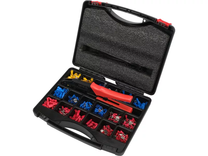 Improve your projects with the YT-068920 set! This professional crimping tool combined with a wide range of connectors and clamps ensures efficient work.
