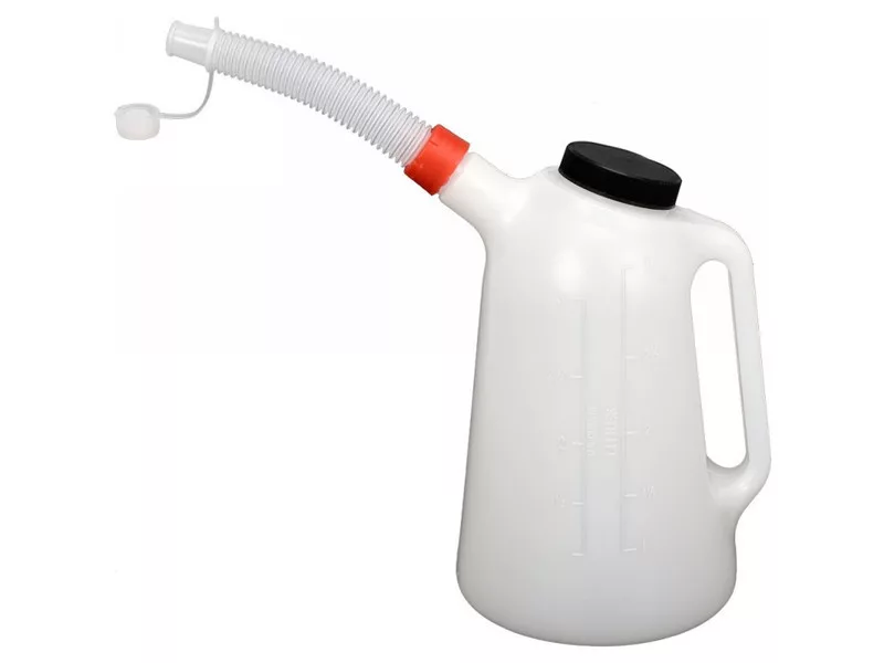 • made of durable PE plastic resistant to liquids it has a practical flexible funnel and screw-on lid
