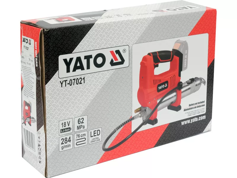 The battery-powered grease gun YT-07021 is a powerful tool designed for professionals. It facilitates the maintenance of construction, agricultural, and automotive equipment, ensuring long-lasting efficiency, performance, and precision in any conditions.
