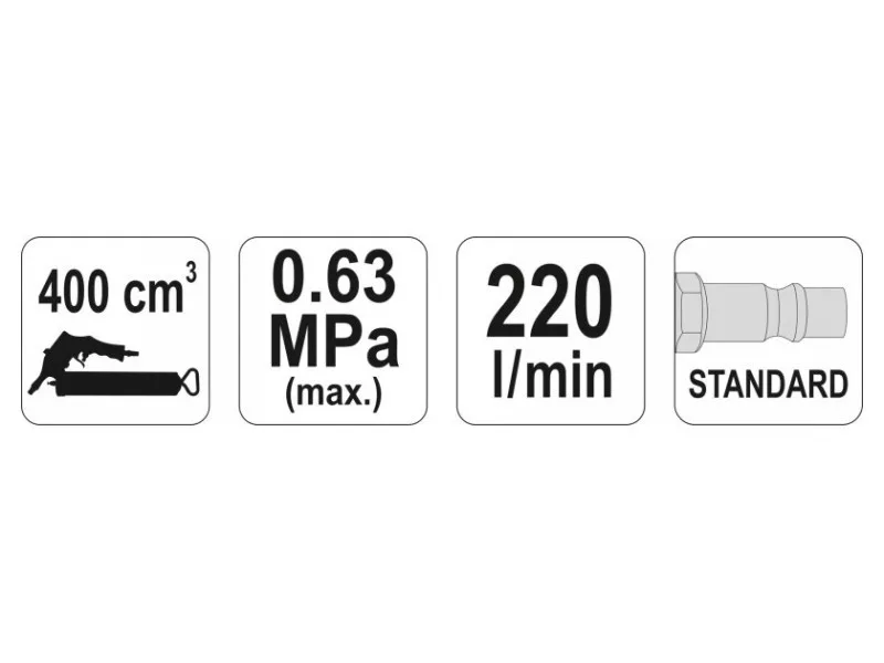 | Air supply hose inside diameter | 3/8" (9.5 mm) |