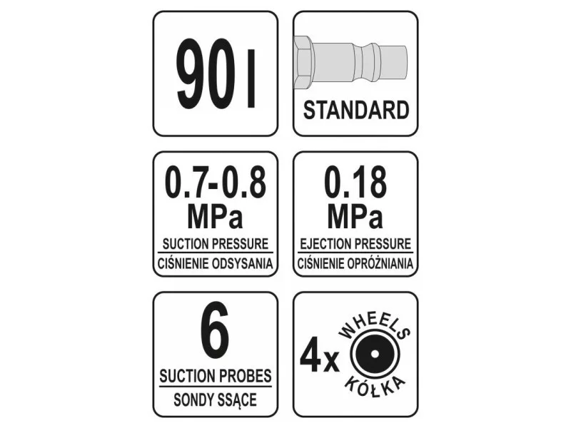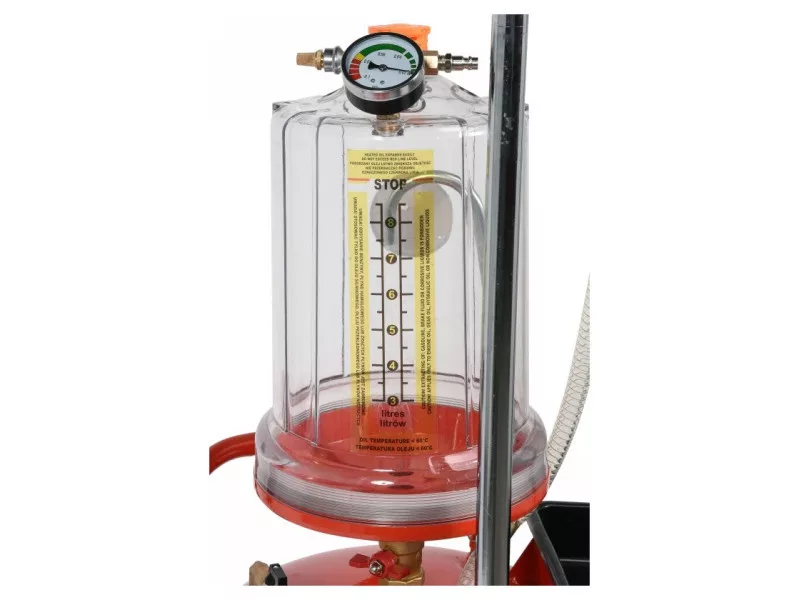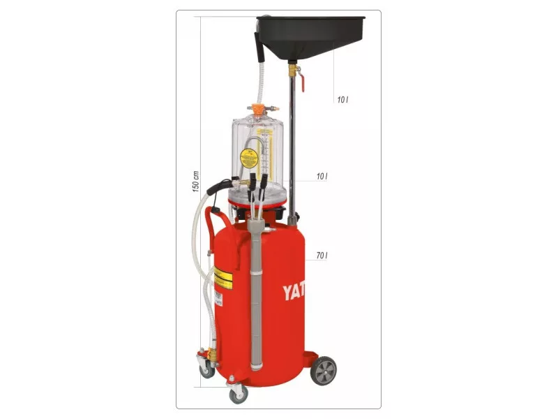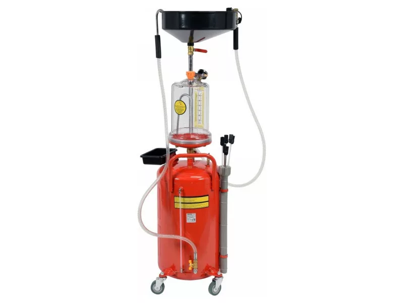 Professional beaker-sucking machine with control tank allows for fast oil drainingós of automobile enginesós and gearboxesós. Used for draining and sucking oil and operating fluids from carsós, motorcycles and agricultural machinery.