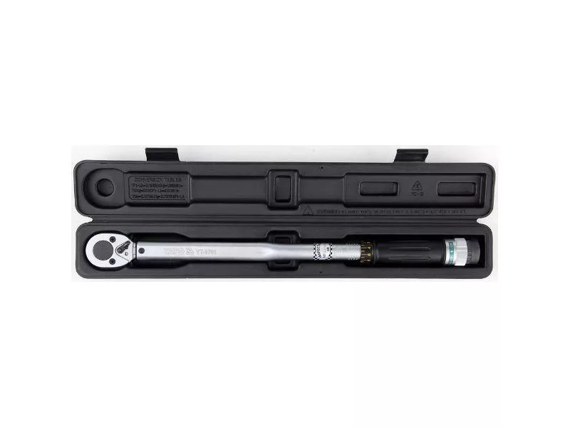 The key is made of chrome-vanadium steel, which ensures its durability and strength. It has a mechanical dynamometric stretch, which after reaching the desired tightening force jumps with one clove, making a characteristic sound. The scale of moments is placed in the key handle, its adjustment occurs through its rotation. After setting the desired moment, block the key with protection at the end of the handle. The key has a GS certificate. Comparative statement of moments in various units of length and force: 1 kg*cm = 13.887 OZ*in (ounce X inch) 1 kg*cm = 0.867 LB*in (Punish X inch) 1 kg*m = 9,80665 n*m ( Niuton x meter) 1 kg*m = 7,233 lb*ft (pound x foot) 1 ft*lb = 12 lb*in (pound x inch) 1 dm*n = 14.16 oz*in (ounce x inch) is used Mainly in automotive technique for precise fastening and wherever the manufacturer determined the required time of tightening the connector. - Choose the appropriate NM or In-LBS scale. Unlock the micrometer knob. - Place the micrometer knob so that "0" on the scale of the knob covers with a vertical line on the key's shoulder. - rotate the micrometer knob according to the direction of the clockwise movement until the requested torque is set. - The desired torque is set when the scale on the micrometer knob will cover with the vertical line on the key's shoulder. - Then block the micrometer knob and set the appropriate direction of rotation of the ratchet, after that the key is ready for use. - Appropriate attachment should be applied to the key. When tightening, reaching the set moment is signaled by clicking the key. If you hear or feel the click, stop tightening. - dynamometric key - factory calibration certificate (individual for each key, marked with the serial number of the key) - user manual - warranty card - suitcase
