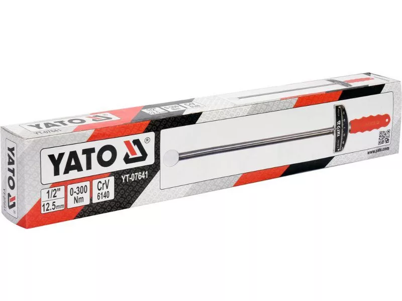 YATO dynamometric key. It is used to tighten threaded connections with a force with a detailed moment. The key range is 0-300nm. The tool works on a pendulum basis. The dynamometric key is tilted yato in Nm. The tool has an ergonomic plastic handle. The whole is made of CRV 6140 material. Because other units operate in use - below a comparative statement of moments in various lengths and forces: 1 kg*cm = 13,887 oz*in (ounce x inch) 1 kg*cm = 0.867 lb*in (pound x inch) 1 kg*m = 9,80665 n*m (niuton x meter) 1 kg*m = 7,233 lb*ft (pound x foot) 1 ft*lb = 12 lb*in (pound x inch) 1 dm* N = 14,16 oz*in (ounce x inch)