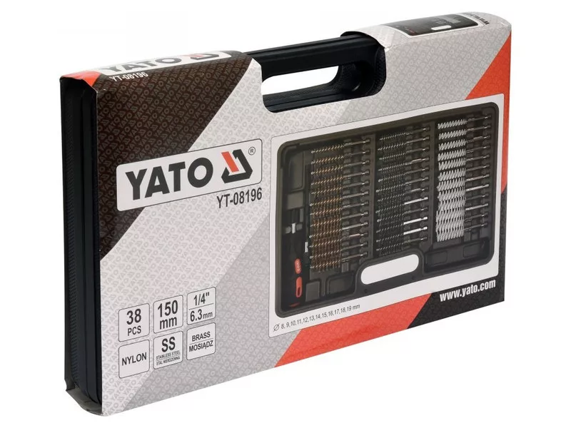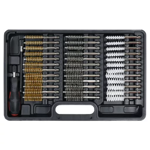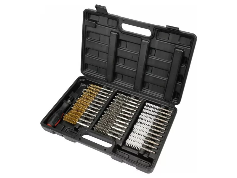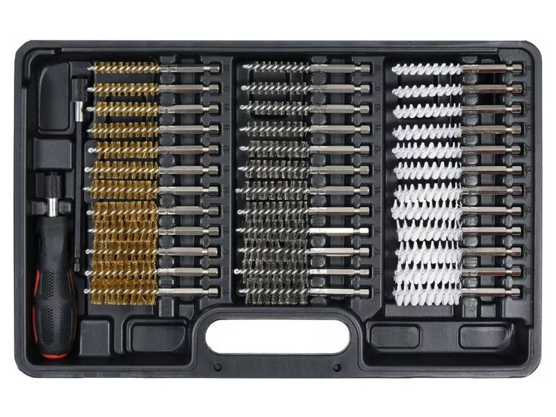 | Set includes | stainless steel brush x12, brass brush x12, nylon brush x12, extension (150 mm), screwdriver handle (150 mm) |