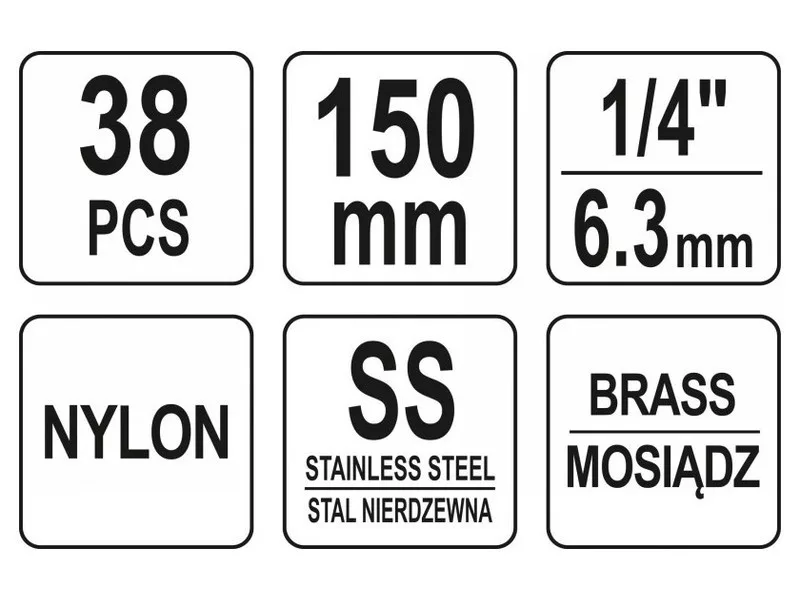 38-piece set of brushes designed to remove dirt and filingsów from drilled holesów, pipes, injector sockets, spark plugs, etc.