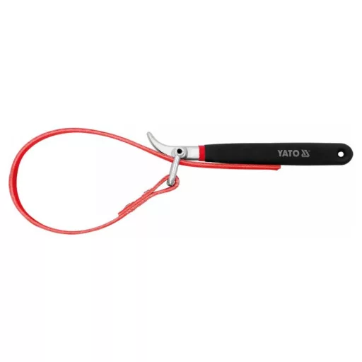 Tape wrench for oil filtersós. Working range from 80 mm to 160 mm.Material: carbon steel cold-forged surface chrome-plated, matteThe handle is coated with two-component rubberThe 20 mm wide belt is made of rubber reinforced with five layers of nylon fibers - mechanical service - service of trucks and construction machinery - hydraulic works.