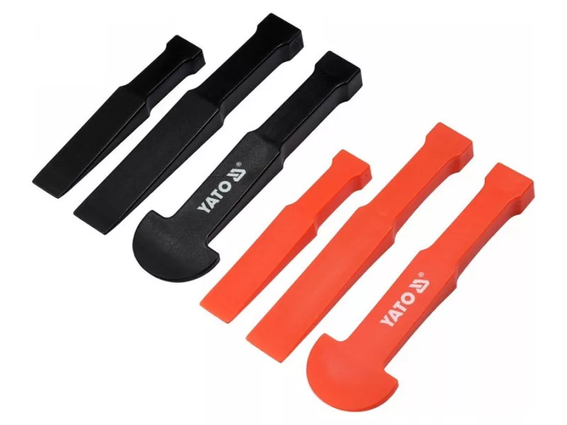 A set of plastic cutters designed for dismantling panels, glued elements, etc. They allow you to separate elements, minimizing the possibility of damage. Flat and round blades profiles, size 127 x 22.2 x 12.7 mm, 175 x 12.7 x 41.25 mm, 175 x 50 x 41, .25 mm. Cutters adapted for light beating with a hammer. Designed for dismantling panels, glued elements, car and furniture upholstery, etc.