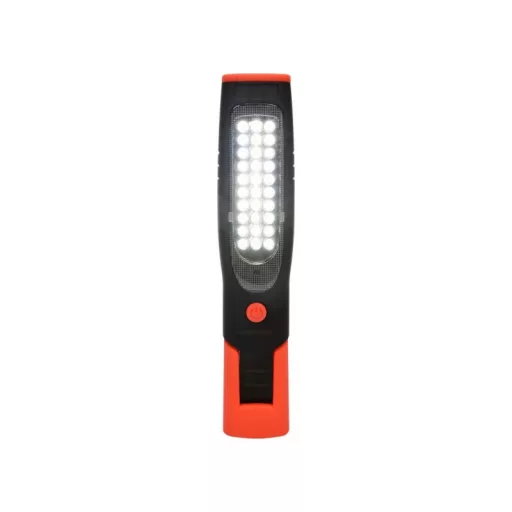 YT-08507 is a professional rechargeable LED portable luminaire. The main panel of the luminaire has 30 LEDs providing powerful luminous flux of 140lm. In addition, there are 7 LEDs installed on the front of the lamp, which perform function of a flashlight allowing illumination of hard-to-reach places. The lamp has a reinforced body construction and an impact-resistant shade made of polycarbonate.