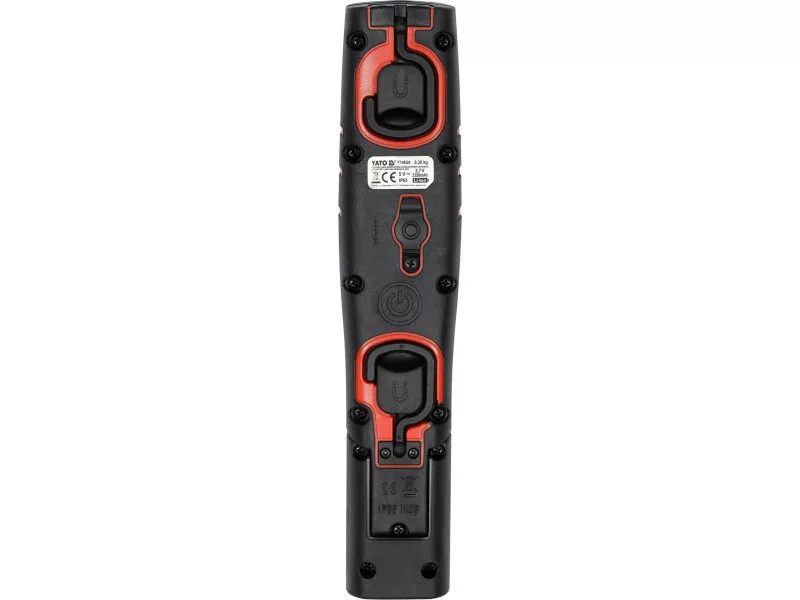 Powerful and durable workshop lamp that works as a floodlight or flashlight. A 180˚ adjustable handle, two suspension hooks and a magnet in the base and back of the lamp make it easy to use conveniently. Four light modes will allow you to select the light output to suit the activity and battery level. In floodlight mode, it emits light output 250/500/1000 lm, in flashlight mode 200 lm. IP65 waterproof class ensures high waterproof and dustproof. Mechanical protection class IK09 means resistance to impacts and falls. The lamp is equipped with a rechargeable lithium-ion battery with a capacity of 3350 mAh, which allows you to work up to 8 h.