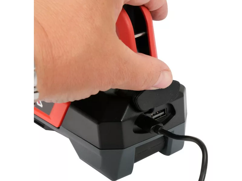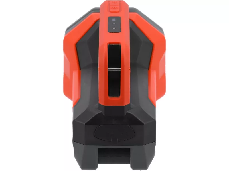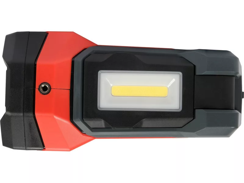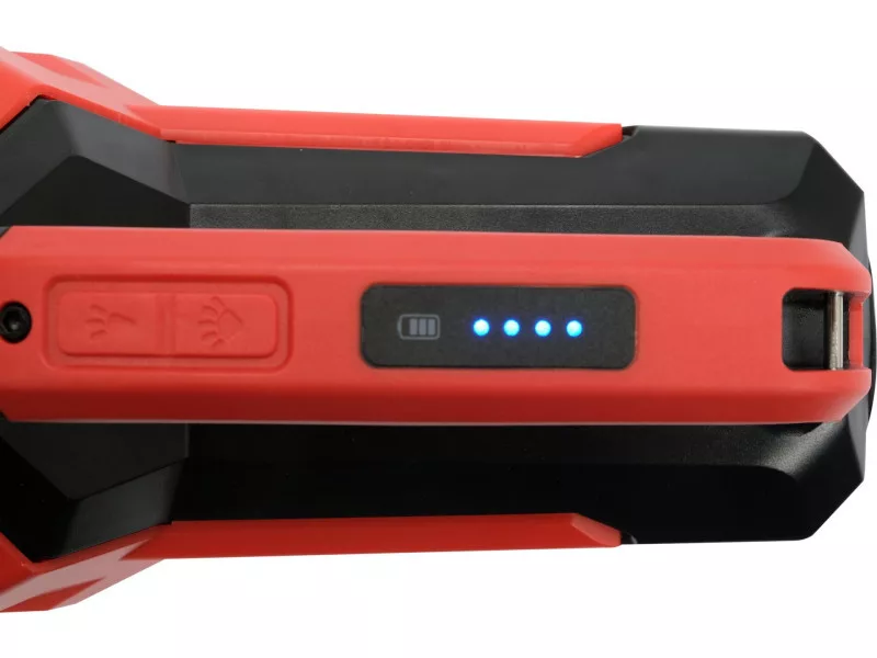 A flashlight that combines the function of a directional searchlight and an adjustable floodlight, for which the flashlight body is the base. The range of the searchlight is 244 m. The searchlight shines with a 600 lm power led, the floodlight with a 1000 lm cob led. The flashlight is powered by a built-in 8,000 mAh battery, which can also be a powerbank. The handle features a 4-stage battery charge indicator.