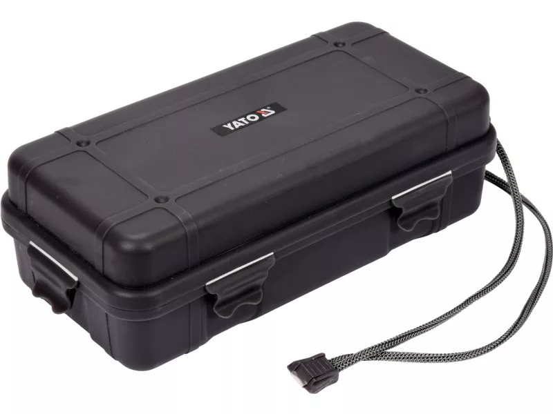 Durable, aluminum YATO flashlight provides 900 lm of light output and a range of 200 m. Five working modes allow for adjusting the lighting to the tasks being performed and the battery level. The lithium-ion 3.7 V 2200 mAh battery provides up to 7 hours of work and allows for charging other devices - powerbank function. An additional advantage is the unique base of the flashlight, which can also serve as a bottle opener and a glass-breaking hammer. The set is packed in a durable case with clips for easy storage and transport, making it a great gift.