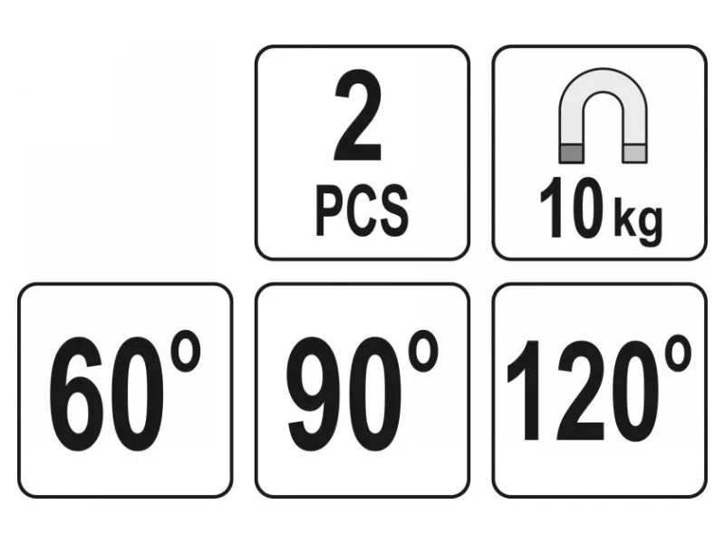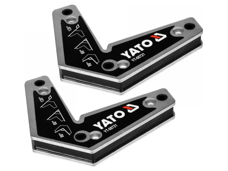 Set of 2 magnetic angle angles YT-08721 used for welding work and angled assembly of various elements sheet metal, fasteners flat bars profiles, pipes etc. Provide a secure hold on welded elementsówith strong magnets.