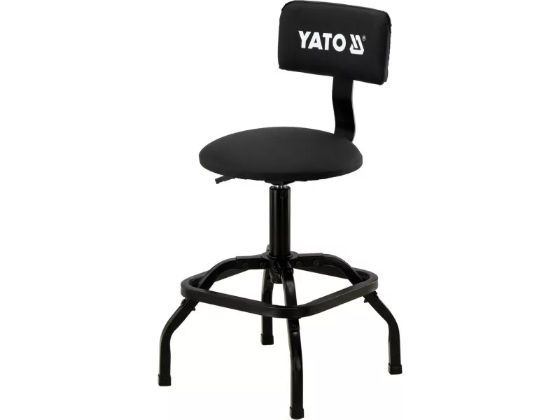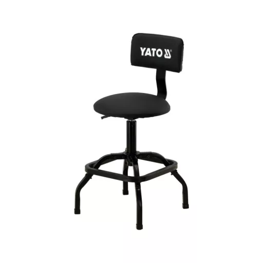 Rotating workshop chair with height adjustment and backrest is a practical addition to the workspace in a garage, service center, or workshop. The 360° swivel seat increases freedom of movement, making it easier to access tools and work items without the need to stand up or reposition the workstation. Height adjustment allows for precise positioning according to the type of task being performed.