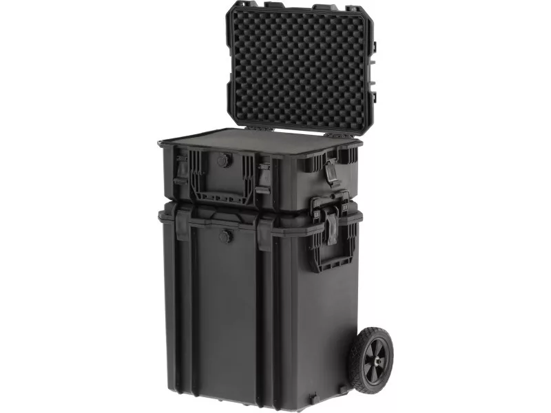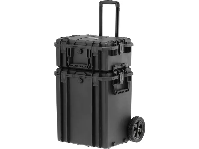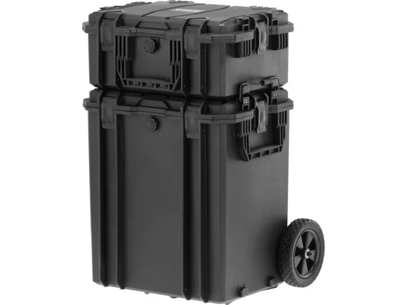 Set of 2 hermetic cases YT-08890 and YT-08895 designed to secure tools or equipment during transport and storage. They are waterproof and dustproof, resistant to external conditions, shocks, mechanical damage, corrosion, and some chemicals. They feature an effective sealing system, enhanced with a decompression valve for pressure equalization during air transport.