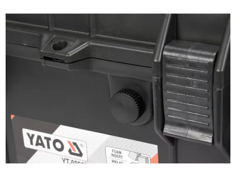 The interior of the case is filled with pre-cut sponge, prepared for self-modeling recesses for specific products such as. tools, photographic equipment or measuring equipment.
