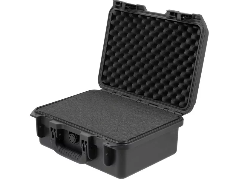 The case is airtight, waterproof and dustproof, resistant to many chemicals and corrosion. Made of flexible polypropylene in accordance with resistance class IP55. It features an effective sealing system, enhanced by a decompression valve for pressure equalisation during air transport. Adapted for padlock closure. The interior of the case is filled with pre-cut sponge, prepared for modelling recesses for specific products, e.g. tools, photographic equipment or measuring equipment.