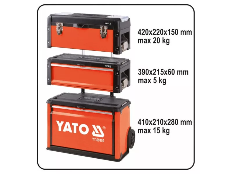 Ensure order and mobility with the YT-09102 trolley. Its modular design ensures easy access to tools and efficient work in any conditions.
