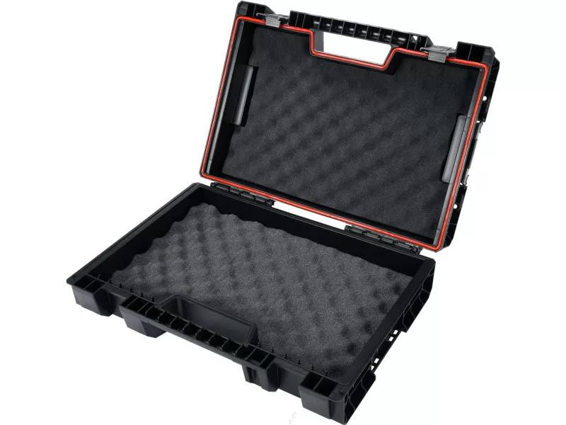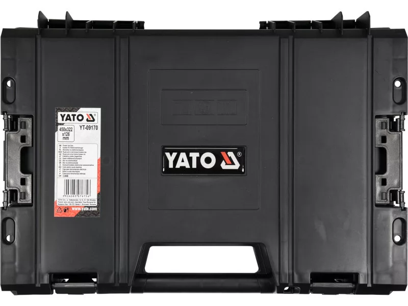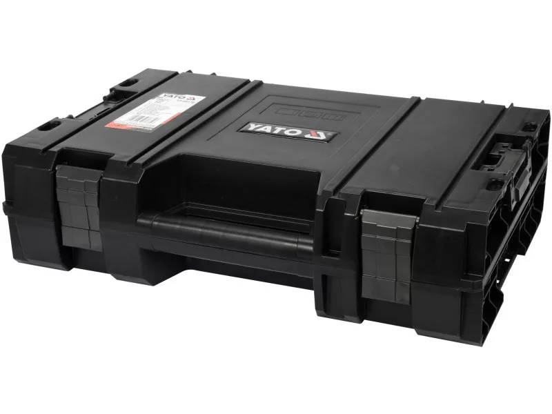 Designed for transporting and storing power tools: drills, screwdrivers, angle grinders, etc. Designed for both professionals and DIY enthusiasts. It belongs to the YATO modular box system. It can be clipped to the system base box on the YT-09166 and YT-09162 and YT-09183, as well as a second, identical box for power tools.