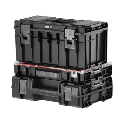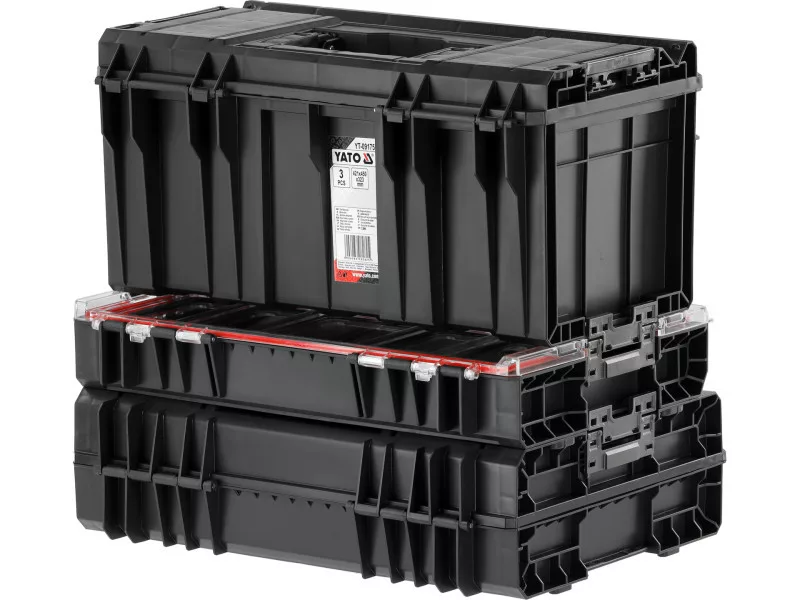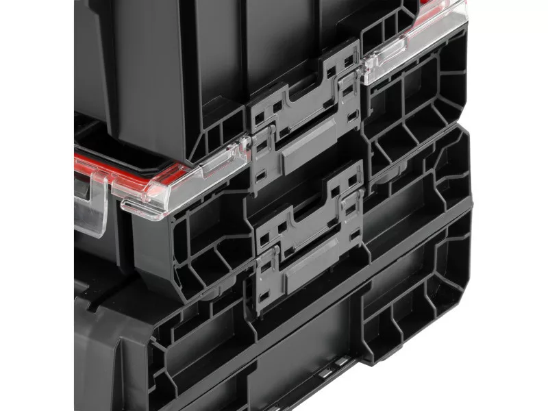 A set of 3 elementsówith solid fasteners and side connectors made of strong polyamide. The combination in this configuration creates an interesting solution so that workshop normals will always be at hand. Flexible seals installed in the lids provide splash-proof , which protects the contents from splashing and dust.