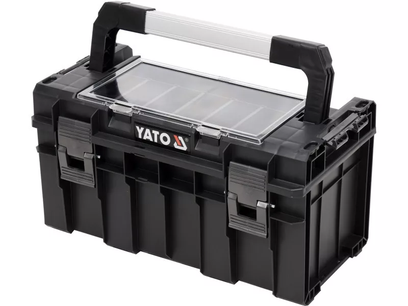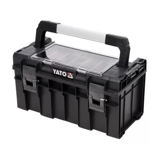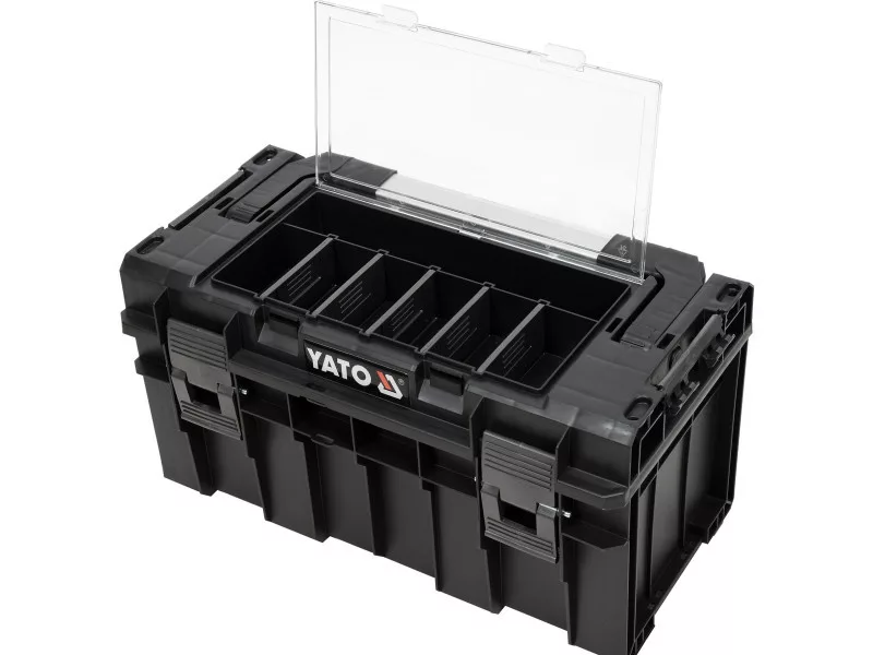 The ergonomic, lockable box allows for convenient storage and transportation of tools and small items. It can be stacked and carried in 2-3 pieces at a time (stacking), and can also become part of the system box sets YT-09162 or YT-09166. Ideal for professionals and DIY enthusiasts.