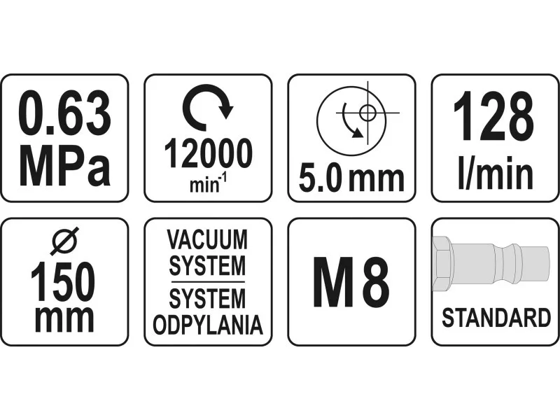 Professional eccentric grinder powered by compressed air. Thanks to abrasives applied directly to the discs it allows grinding and polishing of various materials. Used in automotive service and industry.