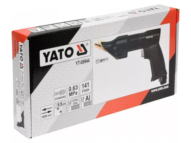 Ensure maximum work efficiency with the YATO YT-09944 pneumatic shears, guaranteeing effortless cutting of sheet metal with the highest precision. Ideal for tasks requiring speed and accuracy.