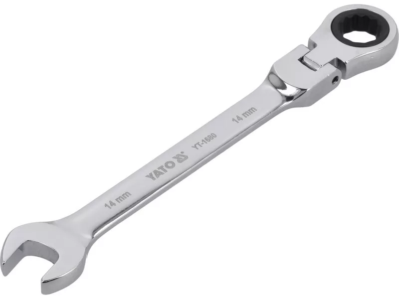 High-quality combination wrench equipped with ratchet and joint. Designed for automotive workshops, service shops and do-it-yourselfers.