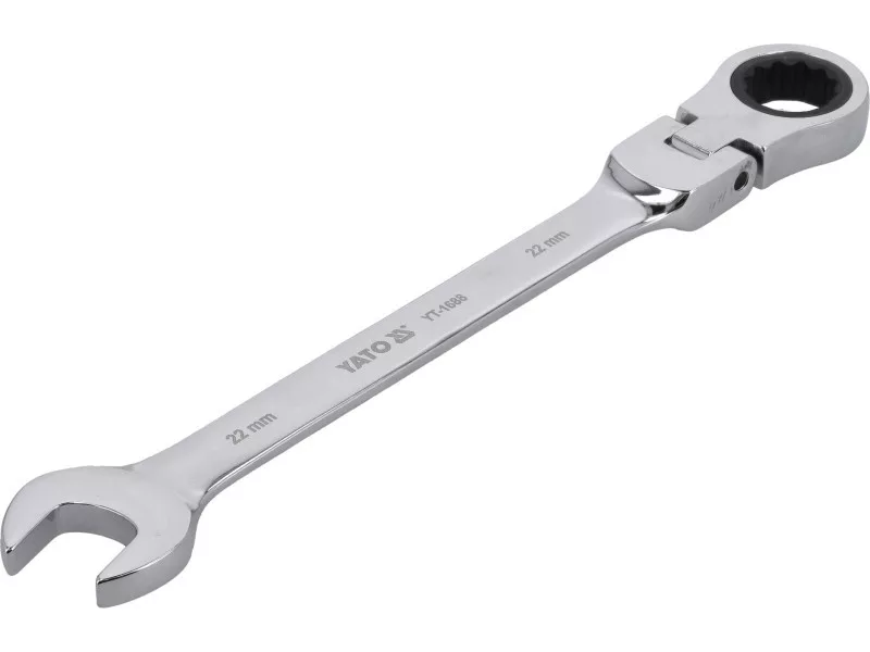 High-quality combination wrench equipped with ratchet and joint. Designed for automotive workshops, service shops and do-it-yourselfers.