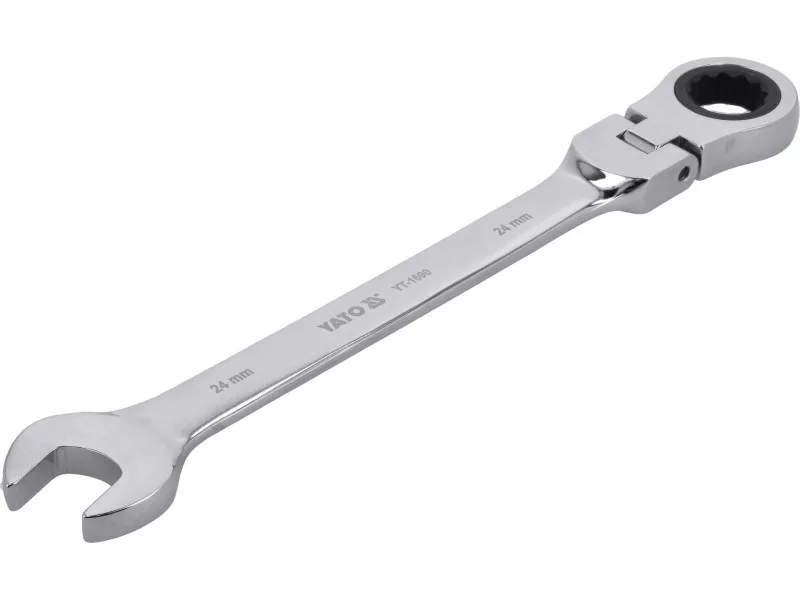 High-quality flat-ring wrench equipped with a ratchet and joint. Designed for car workshops, services, and DIY enthusiasts.
