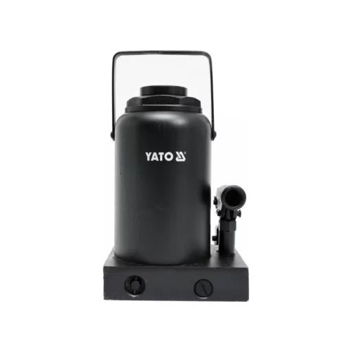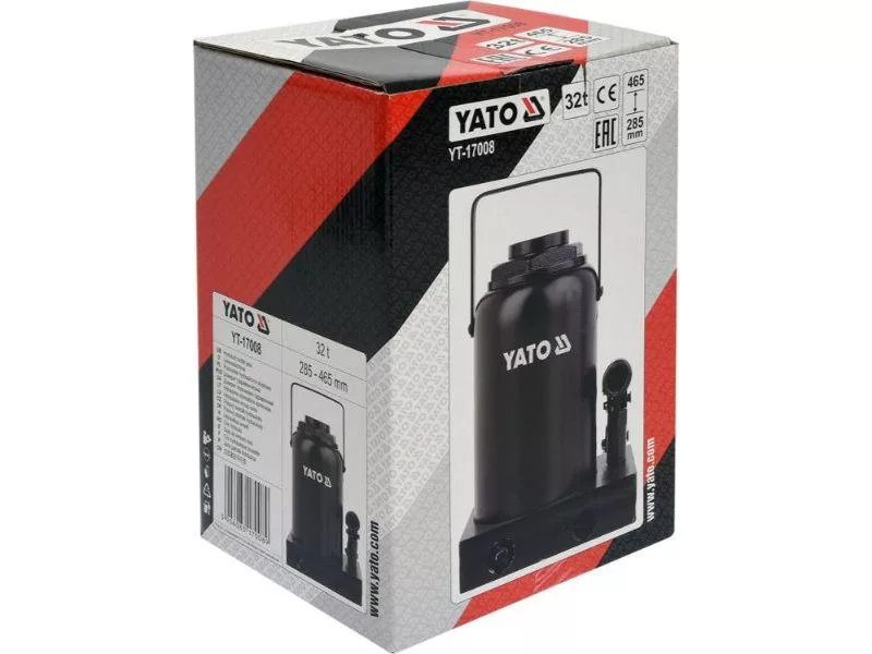 Professional YATO brand hydraulic post lift, featuring a system of valves that precisely dose the oil flow. The lifting capacity of the jack is 32 tons, and the lifting range is from 285 mm to 465 mm. It is characterized by its small size and weight, which is important for moving and storage. Indispensable in auto repair shops and vehicle service stations.