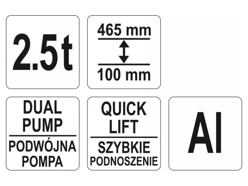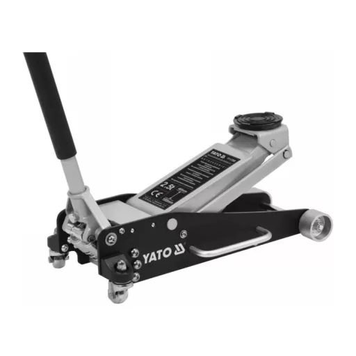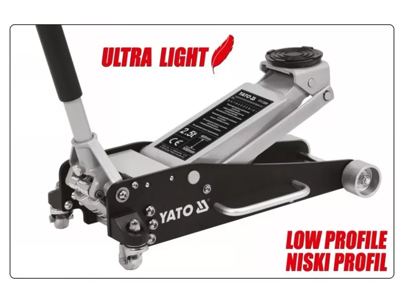 High quality lightweight car jack constructed on the principle of an arm jack. It has a hydraulic drive that operates in the horizontal axis. The low profile allows you to slide the jack under any car, also with a low chassis.