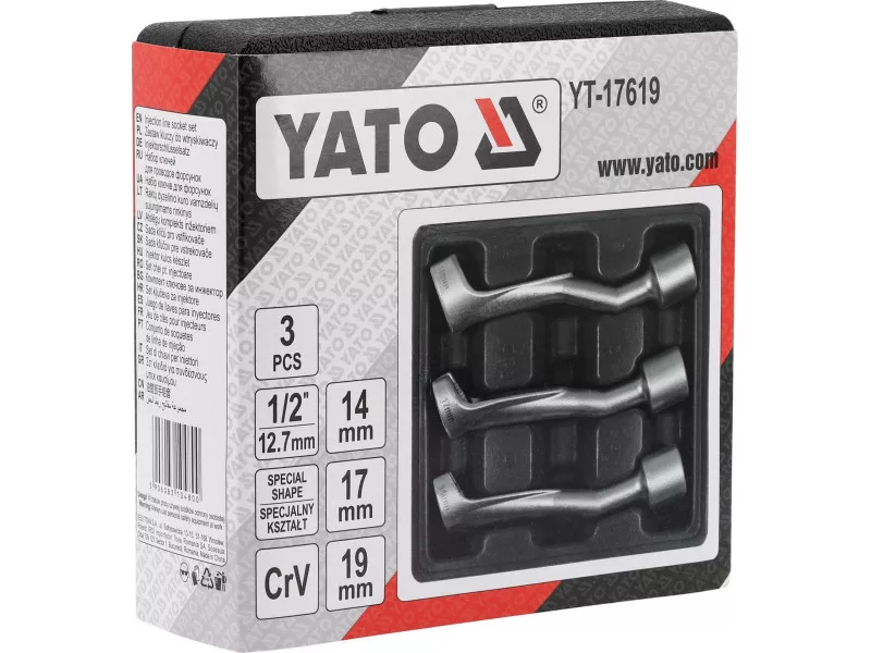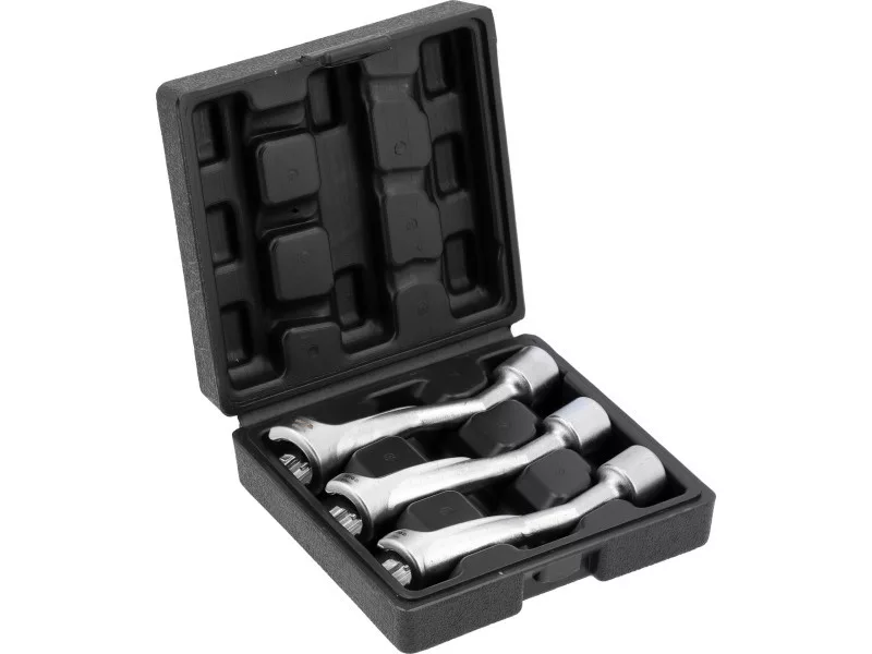 Set of three 1/2" inch spanners for fuel injectors and injection pumps. Spanners made from high quality chrome vanadium steel. Kit for use on BMW, VW, Mercedes-Benz vehicles.