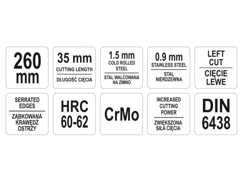 - for cutting steel sheets up to 1.5 mm thick and stainless steels up to 0.9 mm thick
