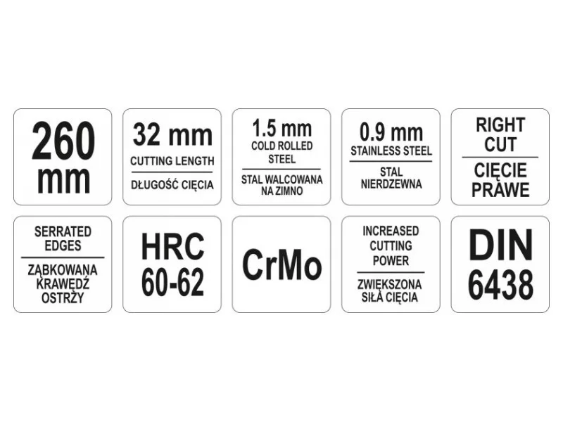 - for cutting steel sheets up to 1.5 mm thick and stainless steels up to 0.9 mm thick