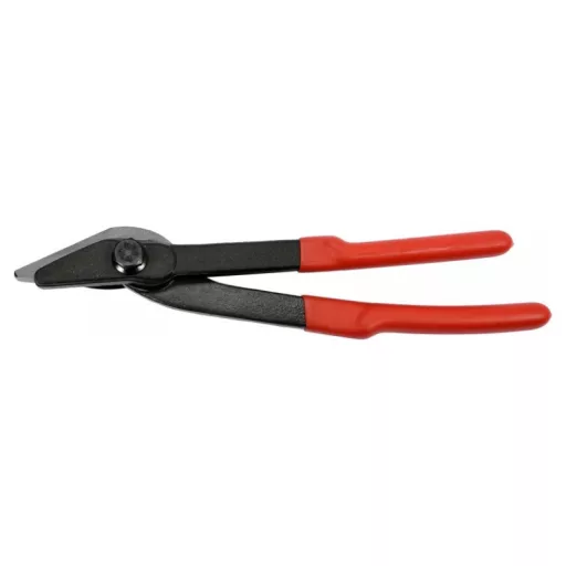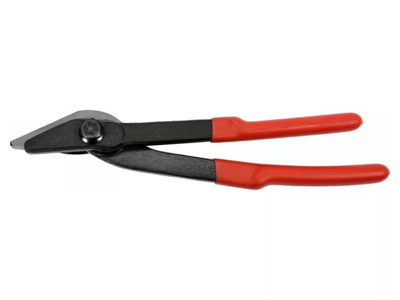 Specialized scissors for effective, safe cutting of steel tapes / e.g. steel coat used to close loads /. The construction of the jaws allows for safe cutting of steel tapes up to 28 mm wide and a thickness of up to 0.8 mm. Scissors dusted from high carbon steel / hcs /. Inductively tempered to a hardness of 58-61hrc. Handles in hard, slippery vinyl covers. Total length 305 mm. For safe cutting of steel tapes used to close loads.