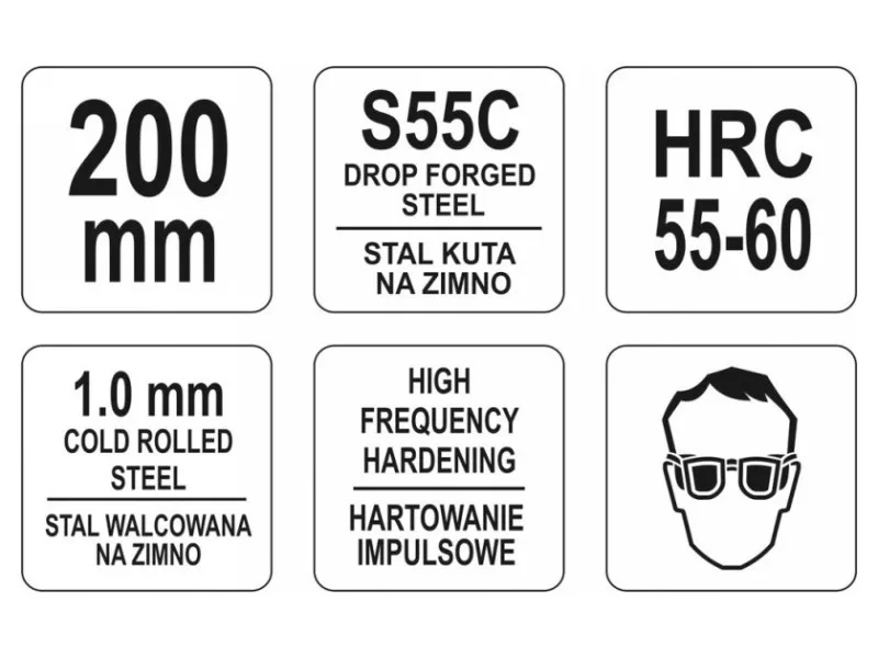 • jaws induction hardened to a hardness of about 55-60 HRC, effectively cut steel sheet up to 1 mm thick, cold-rolled steel