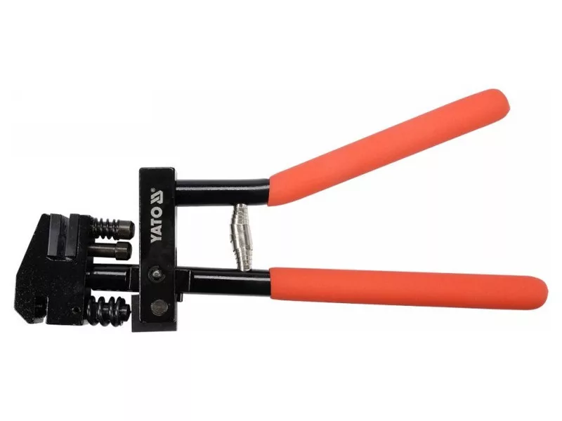 The Flacier Dress-Felcarka YATO is an indispensable tool in a tin-painting workshop. Thanks to the rotary head, you can profile the baking tray before joining and make holes for weld places. • allows you to make holes in the sheets intended for welding • allows you to profile and level the sheet by bending the edges • The steel structure ensures durability and resistance to damage • powder -painted body • profiled handle covered with foam ensures comfort of work • strengthened crushing jaws • hardened soup cutting out holes • springs The expanders guarantee a quick return of the jaws to the starting position • Diameter of cut holes: 5 mm