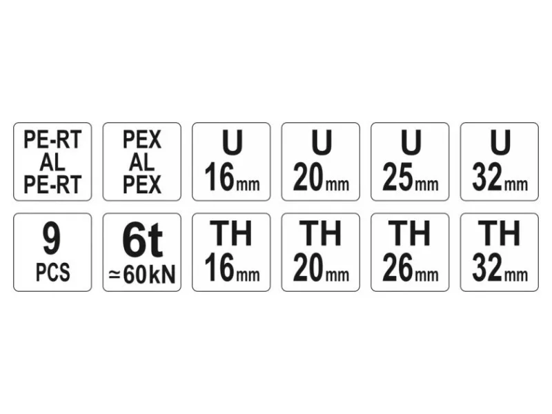 • Wide set of 8 dies (type U: 16, 20, 25, 32 mm; type TH: 16, 20, 26, 32 mm)