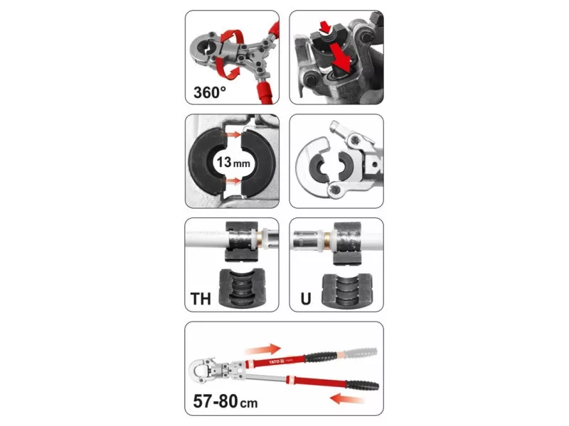 • Telescopic handles (57 cm to 80 cm) significantly reducing the effort needed for crimping