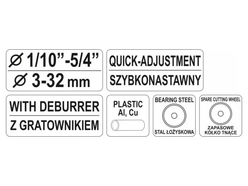 Speed pipe cutter with working range of 3 - 32 mm.